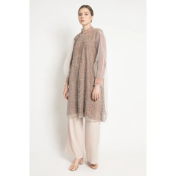 This glamorously ornate midi dress is an undeniable favorite from our RAYA lineup. Underpinned with a tonal long-sleeve dress in satin rose gold for coverage and wear it with pants for a more relaxed look.